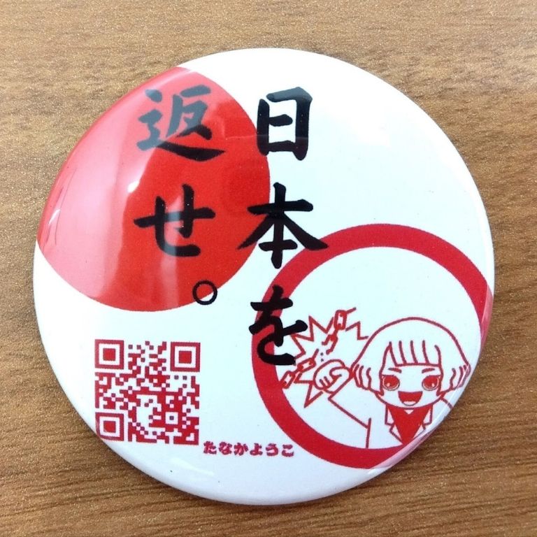 田中陽子オリジナル缶バッジ『そろそろ気づけ。』『日本を返せ』BASEにて販売中。1個400円。